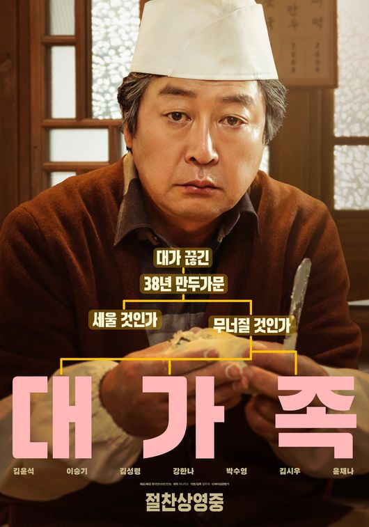 영화 '대가족'은 스님이 된 아들(이승기) 때문에 대가 끊긴 만두 맛집 ‘평만옥’ 사장(김윤석)에게 세상 본 적 없던 귀여운 손주들이 찾아오면서 생각지도 못한 기막힌 동거 생활을 하게 되는 가족 코미디. 영화 '대가족'은 현재 전국 극장에서 절찬 상영 중이다.