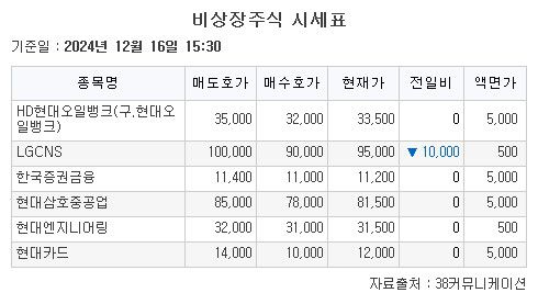 장외주식 거래 플랫폼 38커뮤니케이션에 따르면 16일 비상장 주식 시장은 하락세를 이어갔다.
