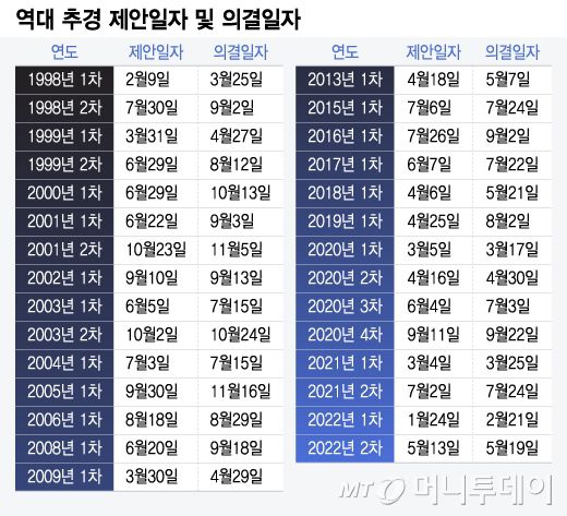 역대 추경 제안일자 및 의결일자/그래픽=윤선정 |