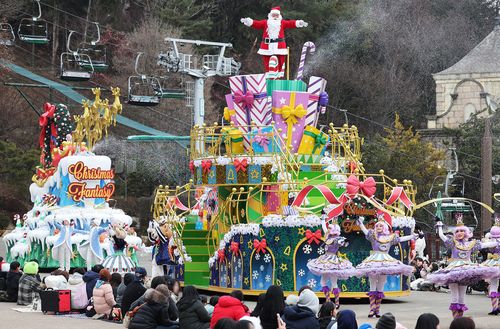크리스마스를 아흐레 앞둔 16일 경기도 용인시 에버랜드에서 '블링블링 X-mas 퍼레이드'가 펼쳐졌습니다.