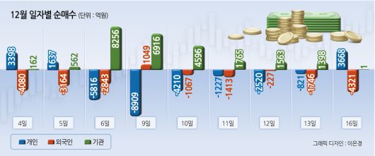 [헤럴드경제=신주희 기자] 국내 증시에서 지난 16일 외국인들이 순매도세 5000억원에 이르며 이달 들어 최고치를 기록했다. 윤석열 대통령 탄핵안이 국회를 통과해 정치적 악재가 해소됐음에도 경제 펀더멘탈 충격을 단기간에 회복하기에는 어려워 보인다는 심리가 반영된 것으로 분석된다.
