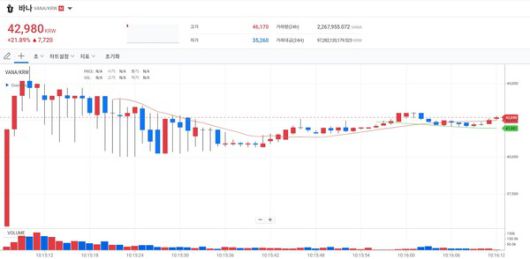 업비트가 거래지원을 시작하는 종목은 바나(VANA)다. 바나 네트워크를 통한 입출금을 지원하는 바나는 이날 오전 10시 15분 거래를 시작했다. 당초 예정된 시간인 10시 정각에서 15분 개시 시점이 지연됐다. 거래 개시 10분이 지난 10시 25분 가격은 3만9000원 안팎을 오르내리고 있다.