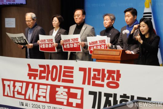 [서울=뉴스핌] 윤창빈 기자 = 김용만 더불어민주당 의원이 17일 오전 서울 여의도 국회 소통관에서 열린 뉴라이트 기관장 자진사퇴 촉구 기자회견에서 발언하고 있다. 2024.12.17 pangbin@newspim.com