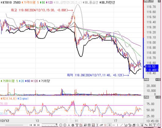 10년 국채선물 가격 5분봉 차트(자료=엠피닥터) |
