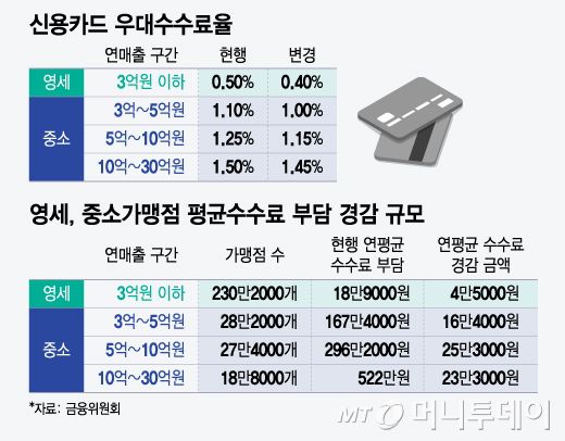 영세·중소 가맹점 신용카드 우대수수료율 0.05%~0.1%P 인하..연간 4만5000원~23만3000원 줄듯