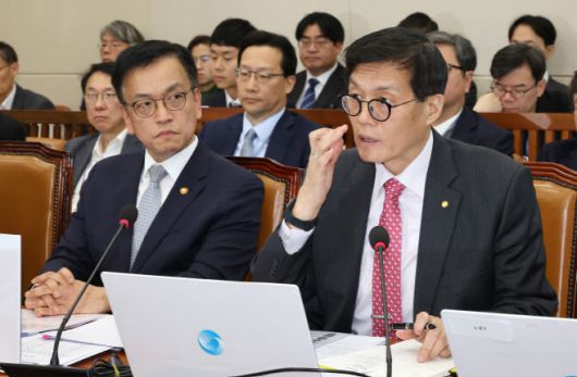 이 총재는 이어 "현재 통과된 예산안은 경제 성장률에 마이너스 0.06%포인트(p) 정도 영향이 있다"며 "지금처럼 하방 위험이 있는 상황은 재정을 조금 더 이용할 근거가 된다"고 밝혔다. 다만 "과거나 평상시 통화정책을 하는 수준과 비교하면 유동성이 풀린 것은 아니다"고 부연했다.
