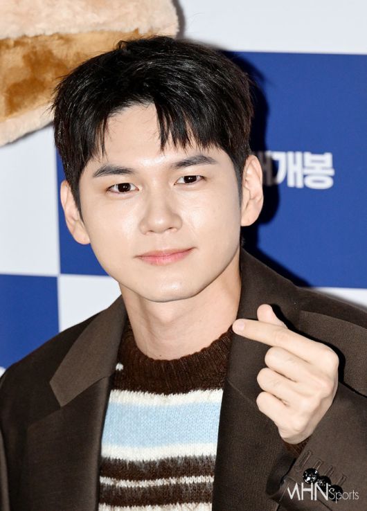 배우 옹성우가 18일 오전 서울 강남구 메가박스 코엑스에서 열린 영화 '니코: 오로라 원정대의 모험' 언론 시사회에 참석해 포즈를 취하과 있다.