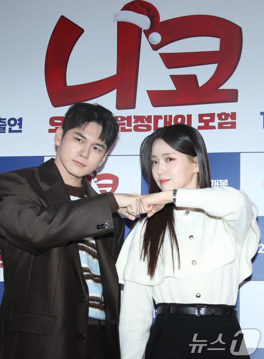 (서울=뉴스1) 권현진 기자 = 배우 옹성우와 김지은(오른쪽)이 18일 서울 강남구 코엑스 메가박스에서 열린 애니메이션 ‘니코:오로라 원정대의 모험’ 언론 시사회에서 포즈를 취하고 있다. '니코: 오로라 원정대의 모험'은 멋진 산타 비행단을 꿈꾸는 꼬마 사슴 ‘니코’와 ‘스텔라’가 크리스마스를 하루 앞두고 사라져버린 썰매를 되찾기 위해 떠나면서 펼쳐지는 모험을 그린 작품이다. 2024.12.18/뉴스1