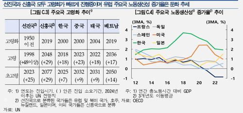 선진국·신흥국 고령화·노동생산성 둔화 추이 |