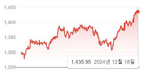 최근 1년간 원·달러 환율 추이 (자료=구글 캡처) |