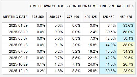 시카고상품거래소(CME) 페드워치 툴에 따르면 연방기금금리 선물시장에서 내년 1월 기준금리가 동결될 확률은 91.4%로 치솟았다. 3월(58%), 5월(50.4%)도 동결이 우세하다. 6월 추가 금리인하 확률은 62% 정도 가리키고 있고, 그 이후에는 동결 가능성이 높다고 보고 있다. 내년 단 한차례 인하로 보고 있는 것이다.