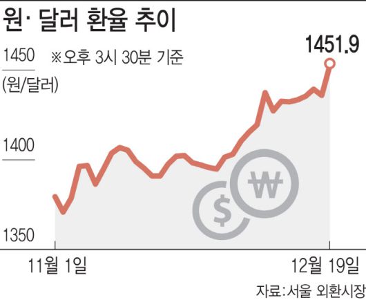 시장에서는 비상계엄과 탄핵 정국으로 원화의 가치가 하락한 데다 대내외 상황마저 원화 약세를 부추길 수 있다고 보고 있다. 내년 1월 트럼프 2기 행정부 취임 이후 강달러 기조가 강화하면 원화의 약세가 더 두드러질 수 있다는 분석이다.