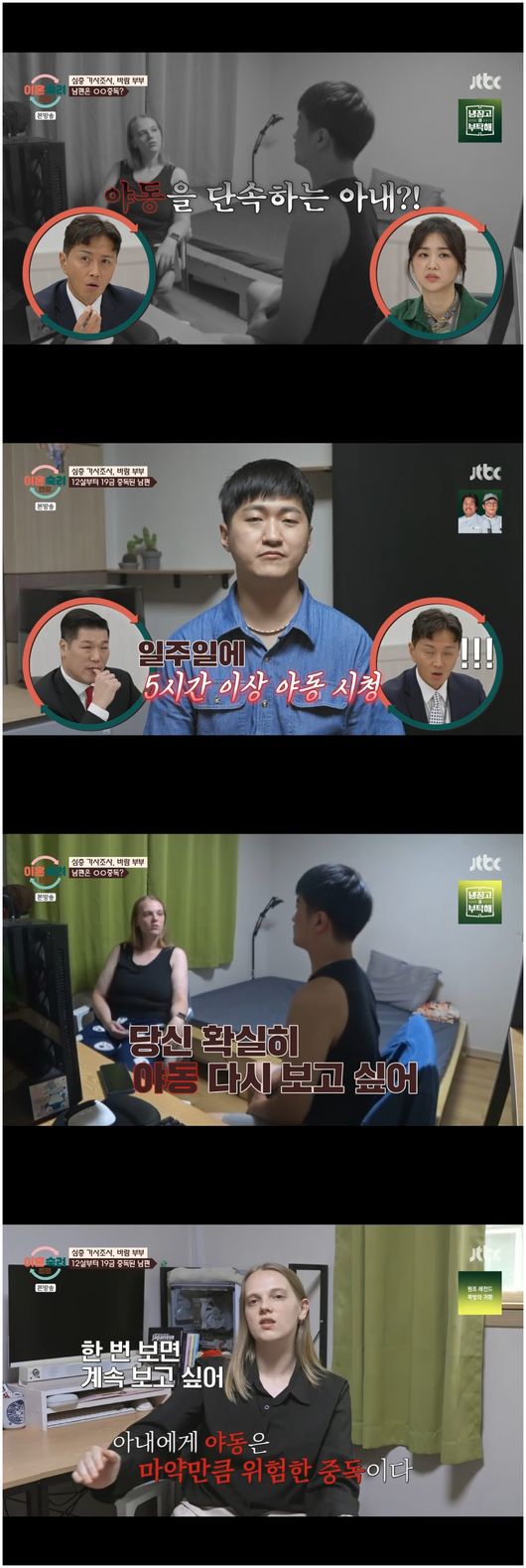 김찬호는 게다가 음란물 중독이었다. 윤희아는 “야한 장면이 심한 걸 보면 남편은 야동을 다시 볼 거다. 결혼 후에도 매일 야동을 찾아 봤다”라며 질색했다. 김찬호는 “야동을 일찍 시작했다. 12살부터 야동을 보다 보니까, 중독이 되어 있다. 그래서 하루 1시간, 일주일에 5시간을 본 거 같다”라고 밝혀 모두를 깜짝 놀라게 만들었다.