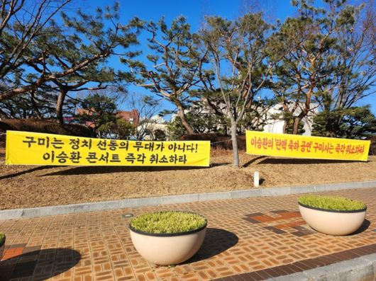 앞서 김장호 구미시장은 지난 23일 구미시청 대회의실에서 기자회견을 열고 “시민과 관객의 안전을 고려해 이승환의 콘서트를 취소한다”며 “이는 구미시문화예술회관 운영조례 제9조에 따른다”고 알렸다. 조례 제9조는 ‘공익상 필요하다고 인정될 때 등의 경우 시장이 예술회관 사용허가를 취소하거나 정지할 수 있다’고 규정한다. 특히 ‘사용허가 제한’ 사유로 ▲공공질서 및 미풍양속을 해칠 우려가 있을 때 ▲시설 또는 설비 관리에 지장이 있다고 인정될 때 ▲예술회관 설립 목적에 위배될 때 등을 들고 있다.