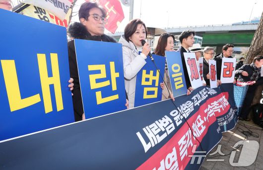 (서울=뉴스1) 김성진 기자 = 민주주의법학연구회, 군인권센터, 민생경제연구소로 구성된 윤석열 체포 변호사단이 24일 서울 용산구 대통령 관저 앞에서 내란범 윤석열 즉각 체포·구속을 위한 기자회견을 하고 있다. 2024.12.24/뉴스1ssaji@news1.krCopyright ⓒ 뉴스1. All rights reserved. 무단 전재 및 재배포, AI학습 이용 금지.