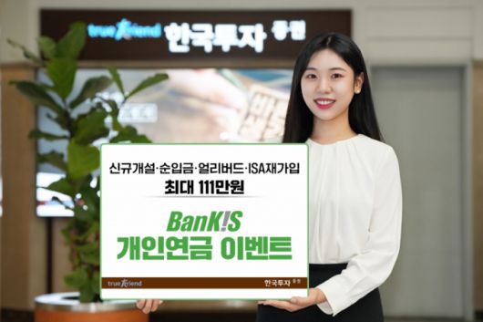 한국투자증권은 2025년 3월31일까지 뱅키스 고객을 대상으로 개인연금 이벤트를 진행한다고 24일 밝혔다. 뱅키스는 비대면 또는 시중은행을 통해 개설하는 한국투자증권 온라인 전용 계좌 및 거래 서비스다.