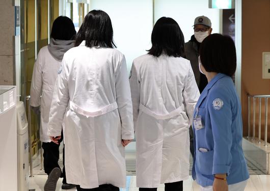 서울의 한 종합병원에서 의료진이 로비를 지나고 있다. 뉴스1 |