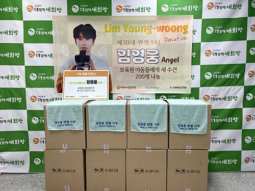 지난 13일 더함께새희망에서 임영웅 팬들로 구성된 임영웅 엔젤의 물품전달식이 진행됐다. 임영웅 엔젤은 '팬앤스타-엔젤앤스타'를 통해서 보육원에 수건을 나눔하는 프로젝트에 참여했다. 추운 겨울 보육원 아이들에게 필요했던 깨끗하고 포근한 새수건이 전달됐다. 보육원에 가수 임영웅의 이름이 새겨진 새수건이 전달 되자, 아이들이 관심을 보이며 더욱 기뻐한 모습이였다.