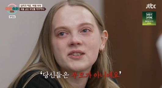 엄마에 대한 이야기를 이어간 아내는 "아버지 열 살 때 돌아가셨다. 심장 문제로. 그 후에 엄마 갑자기 술 많이 마셨다. 그전엔 한 번도 안 마셨다. 그리고 나한테 거의 (엄마가) 맨날 때렸다. 항상 '너 때문에'라고 하면서"고 말했다.