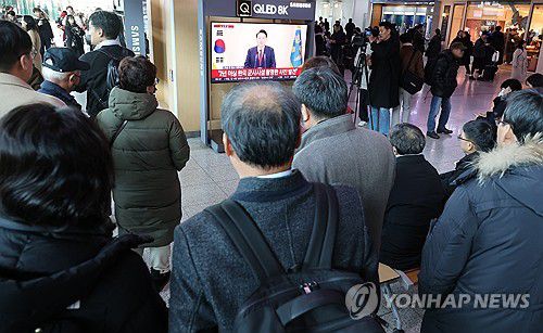 대통령 담화 시청하는 시민들 |
