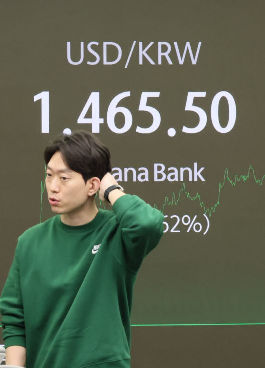 이날 새벽 2시 마감가는 1469.6원이다. 전날 오후 3시 30분 기준(1464.8원)보다는 4.8원 오른 것이다. 이날 야간장에서 환율은 1470.0원까지 치솟았다가 소폭 내리며 장을 마쳤다. 환율이 1470원을 넘은 건 지난 2009년 3월 16일(1488원) 이후 처음이다.