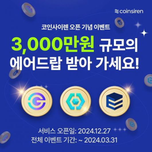 갤럭시아메타버스는 온체인 데이터 분석 포털 플랫폼 코인사이렌을 정식으로 선보고 3000만원 규모의 리워드 에어드랍 이벤트를 진행한다고 27일 밝혔다.