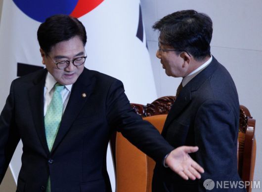 우원식 의장에게 항의하는 권성동 원내대표
