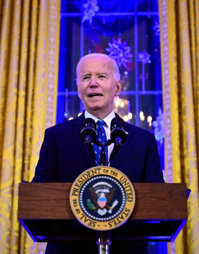조 바이든 미국 대통령이 16일 (현지시간) 워싱턴 백악관에서 열린 유대인 명절인 하누카 행사서 연설을 하고 있다. 2024.12.18 /AFPBBNews=뉴스1 |