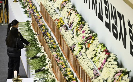 [무안=뉴시스] 김선웅 기자 = 30일 전남 무안군 무안종합스포츠파크에 마련된 제주항공 여객기 사고 희생자 합동분향소에서 추모객들이 조문을 하고 있다. (공동취재) 2024.12.30. mangusta@newsis.com /사진=전신 |