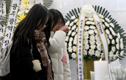 제주항공 여객기 참사 발생 이튿날인 30일 오후 참사 희생자 친구들이 광주 동구 5·18민주광장에 마련된 분향소를 찾아 추모하고 있다. /사진= 뉴시스 |