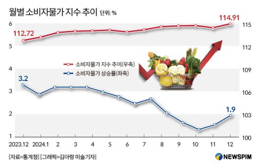 ◆ 12월 소비자물가 1.9% 상승…1%대 턱걸이 안착