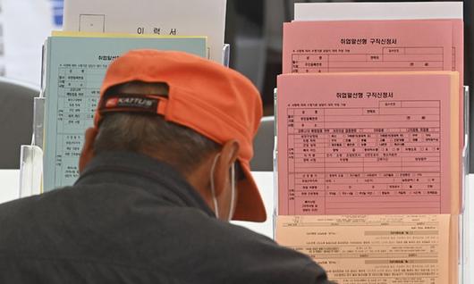 어르신이 구직신청서를 작성하고 있다. 뉴시스 |
