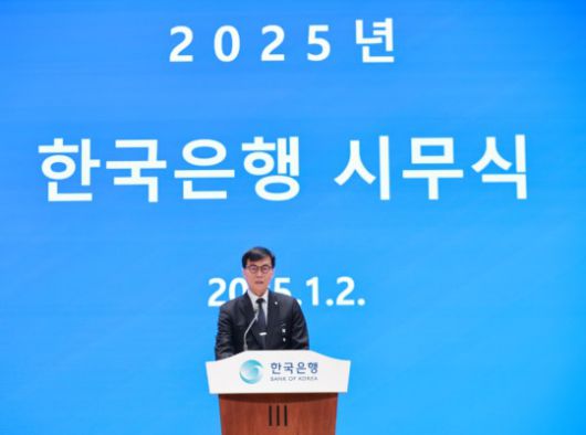 이창용 한국은행 총재가 2일 오전 서울 중구 한국은행 별관1층 대강당에서 열린 한은 2025년 시무식에서 신년사를 하고 있다. / 사진제공= 한국은행(2025.01.02) |