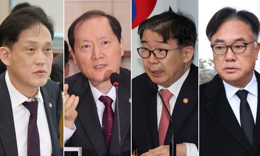 왼쪽부터 김태규 방송통신위원장 직무대행, 이완규 법제처장, 유철환 국민권익위원장, 정진석 대통령실비서실장. 연합뉴스 김영원 기자 |