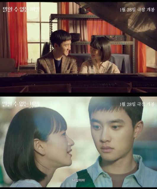'말할 수 없는 비밀'은 시간의 비밀이 숨겨진 캠퍼스 연습실에서 유준(도경수 분)과 정아(원진아 분)가 우연히 마주치면서 시작되는, 기적 같은 마법의 순간을 담은 판타지 로맨스 영화다. 2008년 개봉해 판타지 로맨스 신드롬을 일으켰던 동명의 대만 영화를 원작으로 한다.