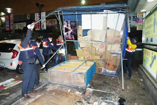 불법노점 철거 중인 동대문구 직원들. 동대문구 제공 |