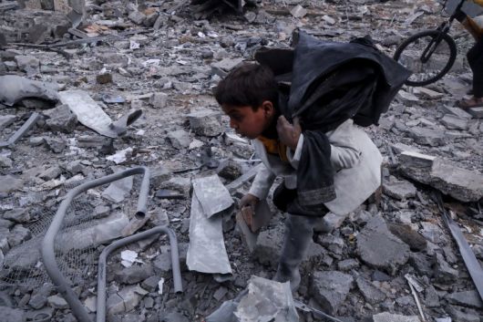 팔레스타인 가자지구 북부 가자시에서 4일(현지시간) 한 팔레스타인 소년이 이스라엘의 공습으로 무너진 주택 잔해더미를 헤집고 다니며 쓸만한 물건들을 찾고 있다. 조 바이든 미국 대통령은 퇴임을 앞두고 이스라엘에 가자전쟁 개전 이후 최대 규모인 80억달러 무기 판매에 나서기로 했다. 로이터 연합 |