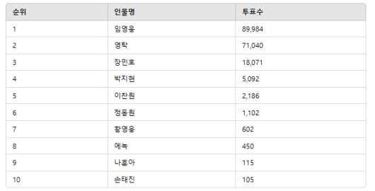 현재 1위를 차지한 임영웅과의 표 차이가 크지 않은 만큼, 남은 시간 동안의 팬들의 투표 참여가 결과를 바꿀 중요한 변수로 작용할 전망이다.