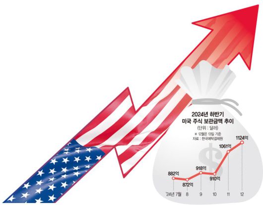 특히 미국 증시가 지난해 급등세를 보이면서 국내 투자자의 관심이 크게 몰렸다. 스탠더드앤드푸어스(S&P) 500은 27.58%, 나스닥은 34.95%로 급등세를 보였다. 이에 국내 투자자의 미국주식 보관액도 지난해 초 646억달러에서 지난해 말 1124억달러로 73% 가까이 크게 늘었다.