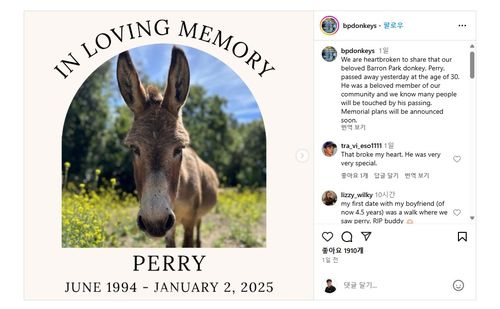 '배런파크 동키 프로젝트'를 운영하는 미국 캘리포니아주 팰로앨토 소재 비영리단체 '팰로앨토 휴메인 소사이어티'는 3일(현지시간) 인스타그램 게시물로 페리가 숨졌다는 소식을 전했다.