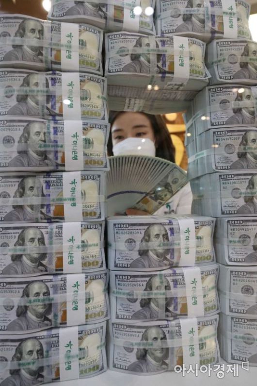 서울 을지로 하나은행 위변조대응센터에서 한 직원이 달러화를 정리하고 있다. |