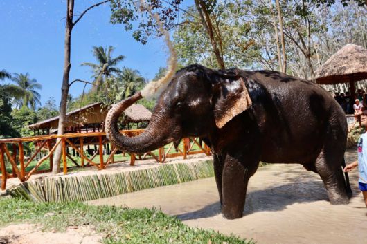 태국에서 코끼리를 씻기는 것은 관광객들에게 인기 있는 관광 상품이다. 해당 시설은 코끼리를 자연 그대로 보여주고 "책임감 있고 윤리적인 코끼리와의 상호 작용을 제공"한다고 표방하고 있다.