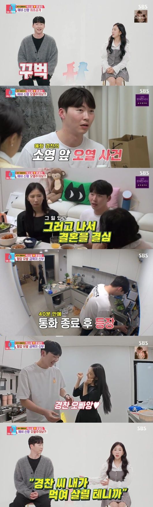한편, 박소영은 "남편이 내 이상형이다. 제일 좋은 건 계속 웃는다. 남편이 선수 시절에 늘 긴장감 속에 살지 않았냐. 저를 만나면 걱정이 없어진다고 하더라"며 여전히 반한 모습을 보였고, 문경찬은 "저는 소영 씨 앞에서 울어본 적이 있다. 은퇴 후에 그냥 시간만 흘러가는 게 힘들었다. 그런데 소영 씨가 다 받아주더라. 저를 안아 주려고 하는 느낌을 받았고 그 이후에 결혼을 결심했다“고 덧붙였다. 이에 박소영은 "내가 먹여 살릴 테니까 즐겁게 일하라고 했다"고 말해 ‘연상 아내’의 남다른 면모를 보였다.
