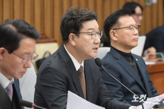국민의힘 권성동 원내대표가 7일 서울 여의도 국회에서 열린 원내대책회의에서 발언을 하고 있다.