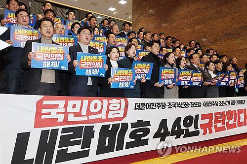 야당 초선 의원들은 관저를 찾은 여당 의원들 명단을 공개한 뒤 "내란 가담, 내란 공범인 국민의힘은 즉각 해체하라"고 비판했다.