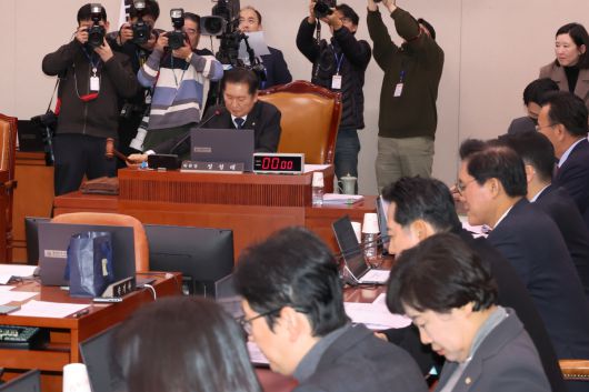 이에 여당 의원들은 강하게 반발했고, 정 위원장은 “2024년에 이어 2025년에도 의사진행 발언을 갖고 이렇게 소란을 피우면 위원장으로서는 의사진행을 하기 매우 어렵다”며 현안질의가 시작된지 40여분 만에 정회를 선포했다.