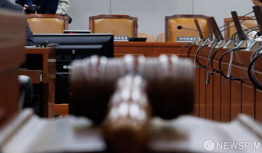 [서울=뉴스핌] 윤창빈 기자 = 8일 오전 서울 여의도 국회에서 열린 운영위원회 전체회의에서 정진석 대통령비서실장과 신원식 국가안보실장, 박종준 대통령경호처장, 성태윤 정책실장 등 증인석이 비어 있다. 2025.01.08 pangbin@newspim.com