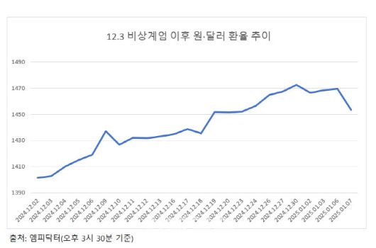 8일 엠피닥터에 따르면 이날 장중 환율은 1444.5원까지 하락했다. 지난해 비상계엄 등으로 인해 12월 27일 장중 환율은 1486.7원까지 치솟으며 1500원을 위협했다. 하지만 보름이 채 되지 않아 환율은 42.2원이나 급락했다.