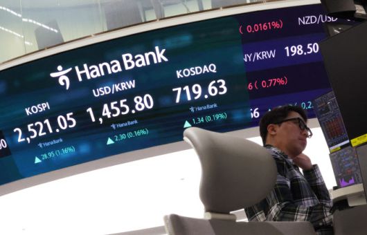 8일 오후 서울 중구 하나은행 본점 딜링룸 현황판에 코스피 지수 등이 표시되고 있다. (사진=연합뉴스) |