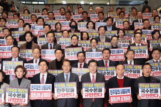 [이데일리 김응열 기자] 국민의힘이 8일 더불어민주당과 국가수사본부(국수본)가 윤석열 대통령 수사와 관련해 내통했다는 의혹을 제기하며 민주당을 규탄하고 우종수 국수본부장의 사퇴를 요구했다.